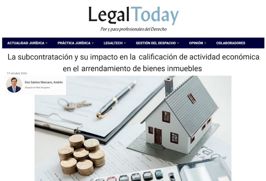 Andrés Dos Santos Marcano, abogado en Next Abogados, analiza cómo la subcontratación en arrendamientos impacta en la calificación de actividad económica. Las consultas vinculantes recientes de la Dirección General de Tributos (V1325-24 y V1377-24) confirman que subcontratar la gestión inmobiliaria es una opción válida para cumplir con los requisitos fiscales de actividad económica. Esto ofrece importantes beneficios. Subcontratación y actividad económica en arrendamientos. En el ámbito fiscal, es clave determinar si una actividad es considerada económica. Esto afecta especialmente a las sociedades dedicadas al arrendamiento de inmuebles. Las entidades que no cumplan con los requisitos se consideran patrimoniales, lo que implica desventajas fiscales. La Ley 27/2014 (LIS) establece que, para que el arrendamiento sea una actividad económica, es necesario contar con un empleado a jornada completa. Sin embargo, las consultas recientes permiten que la subcontratación de servicios a terceros especializados cumpla con este requisito. Eficiencia fiscal a través de la subcontratación. La Dirección General de Tributos concluyó que subcontratar la administración de rentas, negociación de contratos y mantenimiento de inmuebles permite calificar a las sociedades como entidades que realizan actividad económica. Esto es especialmente relevante para empresas con grandes patrimonios inmobiliarios. Subcontratar estos servicios les otorga flexibilidad operativa, al tiempo que aprovechan las ventajas fiscales. Subcontratación como alternativa eficiente. Para empresas con inmuebles complejos, la subcontratación de la gestión de arrendamientos a terceros no solo es válida fiscalmente, sino que resulta una opción eficiente. Contratar personal propio puede ser costoso, mientras que subcontratar permite una gestión más profesional sin perder las ventajas fiscales asociadas a la actividad económica. Para más detalles consulta el artículo completo en LegalToday.com. Descubre más noticias en nuestra sección de Actualidad Jurídica.