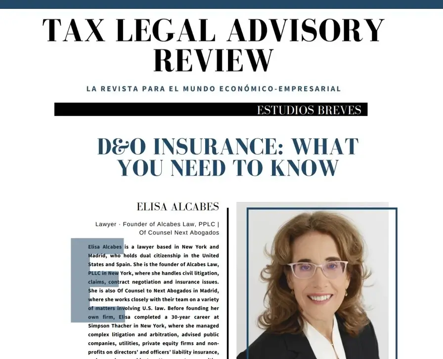 Elisa Alcabes, Of Counsel de Next Abogados, ofrece en este artículo para la revista Tax Legal Advisory su visión sobre la relevancia de comprender a fondo las pólizas D&O en el actual panorama económico global. En él, profundiza en los detalles críticos que rodean estas pólizas, desde las coberturas esenciales hasta las exclusiones, pasando por aspectos cruciales como la definición de asegurado y los periodos de notificación ampliados. En una economía global en constante cambio, todo tipo de entidad empresarial – sociedades anónimas, empresas privadas, sociedades de inversión, instituciones financieras, organizaciones sin ánimo de lucro y otras – debe conocer la cobertura de seguro que ofrecen las pólizas de responsabilidad civil de administradores y directivos o «pólizas D&O». ¿Sabe qué riesgos cubre su póliza de D&O o la de su cliente? ¿Sabe qué riesgos están excluidos de la cobertura? ¿Conoce los pasos que debe dar cuando surge una reclamación o una posible reclamación? Como cualquier póliza de seguros, las pólizas de D&O tienen limitaciones de cobertura. Lamentablemente, estas limitaciones pueden no reconocerse hasta que surge una reclamación. Por lo tanto, es fundamental examinar detenidamente el texto de la póliza propuesta cuando se adquiere o renueva una póliza de D&O, para que se comprendan claramente los términos, exclusiones, condiciones y limitaciones de la póliza. El hecho de que una póliza de D&O incluya o no una determinada disposición o cláusula adicional puede influir en el resultado de una solicitud de cobertura. Es una buena práctica evaluar periódicamente si una póliza de D&O ofrece la cobertura adecuada para sus necesidades o las de sus clientes. Las siguientes disposiciones de la póliza, en particular, merecen una cuidadosa consideración. II. Cláusulas básicas de cobertura Las pólizas de D&O suelen ofrecer tres tipos de cobertura conocidos como «Lado A», «Lado B» y «Lado C». La «Cara A» ofrece cobertura de responsabilidad civil a los administradores y directivos individuales. Esta cobertura suele estar disponible sólo cuando la empresa no indemniza o se niega a indemnizar a una persona que es objeto de una reclamación. Las aseguradoras esperan que la empresa indemnice a sus consejeros y directivos hasta el máximo permitido por la ley. Por lo tanto, los administradores y directivos deben dirigirse en primer lugar a la empresa en busca de indemnización. La cobertura Side A proporciona un respaldo y generalmente sólo responde cuando la empresa es incapaz – legal o financieramente – de indemnizar al individuo. La «Cara B» proporciona cobertura de reembolso a una empresa por las reclamaciones por las que indemniza a sus consejeros y directivos. Esta cobertura beneficia a la empresa al reembolsarle las cantidades en que incurra para defender e indemnizar a sus consejeros y directivos. La «Cara C» proporciona cobertura de «entidad» a la empresa por responsabilidad corporativa, como reclamaciones por valores. Esta cobertura sólo beneficia a la empresa. No está disponible para los administradores y directivos individuales. Las coberturas A, B y C pueden ampliarse mediante la inclusión de otras cláusulas de seguro opcionales que pueden proporcionar: (i) cobertura de investigaciones por parte de organismos o autoridades gubernamentales; (ii) cobertura de demandas derivadas para investigaciones internas desencadenadas por una demanda derivada de un accionista, y (iii) cobertura de gestión de crisis para los importes incurridos en respuesta a circunstancias tales como reformulaciones de estados financieros, anuncios negativos de beneficios o ventas, retirada de productos, agravios masivos o pérdida de personal clave. Definición de asegurado La definición de «Asegurado» debe revisarse cuidadosamente para garantizar que incluye a los directores, directivos y otras personas y entidades que la empresa desea cubrir. Por otra parte, no debe ser excesivamente amplia para no diluir la cobertura disponible. Puede ser necesario incluir cláusulas adicionales para aclarar quién está asegurado y quién no. Anticipo de los gastos de defensa. Desde la perspectiva de los administradores y directivos, quizás la cobertura más importante que ofrecen las pólizas D&O es el adelanto de los gastos de defensa para hacer frente a una reclamación cuando se presenta por primera vez. Es necesario revisar detenidamente la póliza de D&O para asegurarse de que ofrece una cobertura de los gastos de defensa de «primer dólar» o «sin deducible» en el apartado A. Esto garantiza que los administradores y directivos no incurran en gastos para defenderse si la empresa no les indemniza o se niega a hacerlo. Se trata de una ventaja importante, ya que los gastos de defensa son los primeros en los que se incurre y pueden ser considerables. Definición de reclamación El término «siniestro» debe abarcar la más amplia gama de posibles acciones que puedan emprenderse contra cualquier asegurado. «Reclamación» debe definirse normalmente para incluir cualquier demanda escrita de reparación monetaria o no monetaria (incluidas las medidas cautelares), procedimientos civiles y penales, procedimientos administrativos o reglamentarios, investigaciones civiles, penales, administrativas o reglamentarias por parte de las autoridades gubernamentales, cualquier procedimiento de arbitraje, mediación u otro procedimiento de resolución de conflictos, reclamaciones de valores, demandas derivadas de accionistas y solicitudes de extradición. Definición de siniestro El término «Siniestro» en una póliza D&O se refiere a los costes y gastos que el asegurador estará obligado a reembolsar. El término «Siniestro» debe incluir todos los costes de defensa, acuerdos, sentencias y cualquier daño incurrido en relación con una Reclamación, incluidos los daños punitivos y ejemplares en la medida en que sean asegurables conforme a la legisl